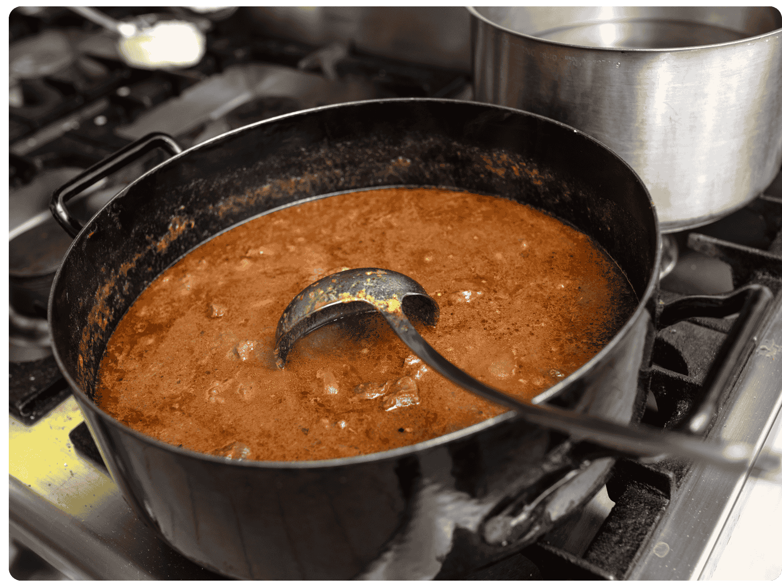 Občas se zdá, že míchání všechno zachrání. U guláše je to ale naopak. Když se omáčka míchá příliš často a příliš prudce, maso se začne rozpadat a cibulový základ zbytečně víří. Omáčka pak není hladká, ale kalná. Guláš stačí jemně promíchat jednou za čas, aby se nepřichytával.