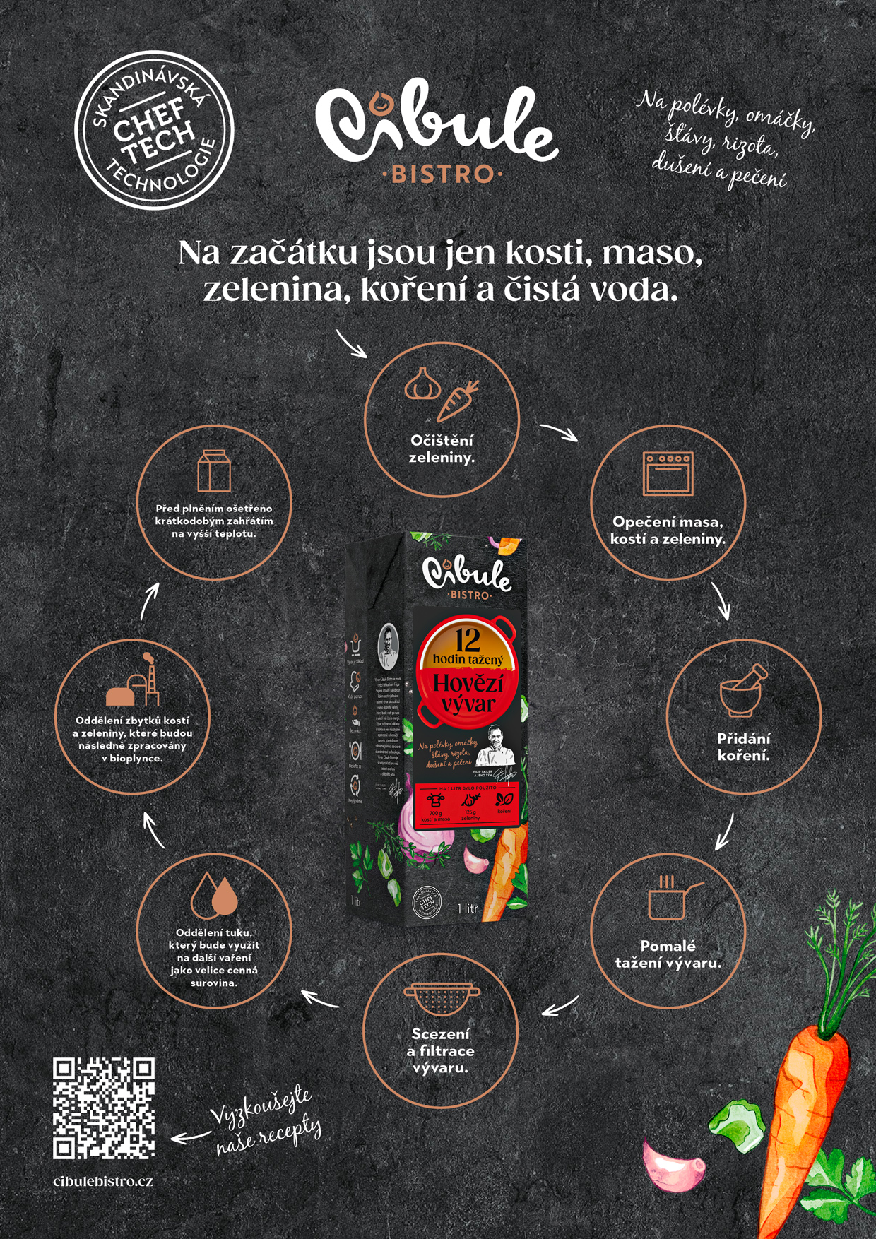 Vývar, stejně jako cibule, je základní surovinou téměř každého jídla, a proto je i základním produktem Cibule Bistro. Náš vývar obsahuje především poctivě vybrané suroviny, je plný chuti, nutričně bohatý a uvařený podle tradiční receptury, ale nejmodernější cestou.
