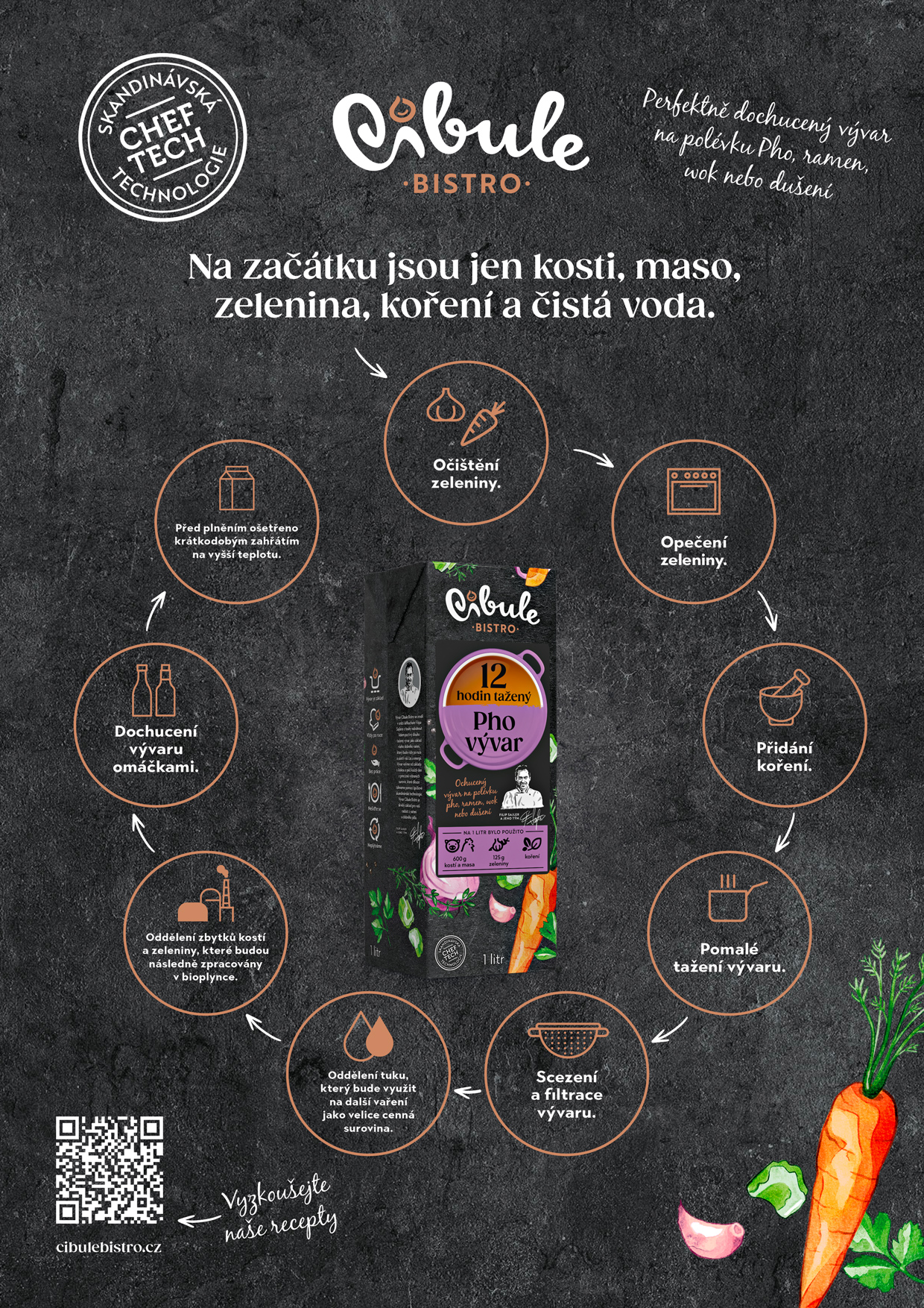 Vývar, stejně jako cibule je základní surovinou téměř každého jídla, a proto je i základním produktem Cibule Bistro. Náš vývar obsahuje především poctivě vybrané suroviny, je plný chuti, nutričně bohatý a uvařený podle tradiční receptury, ale nejmodernější cestou.