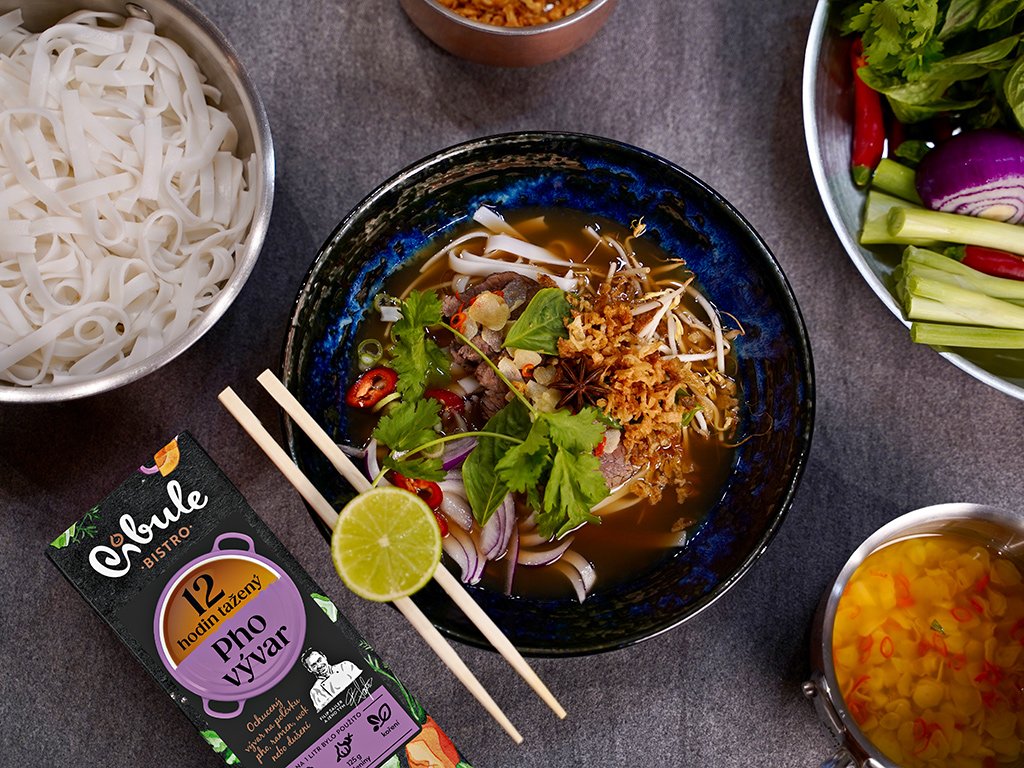 - Pho vývar je určen především k přípravě polévky Pho, a to jak kuřecí, tak hovězí a je i pro tento typ pokrmu finálně dochucen.